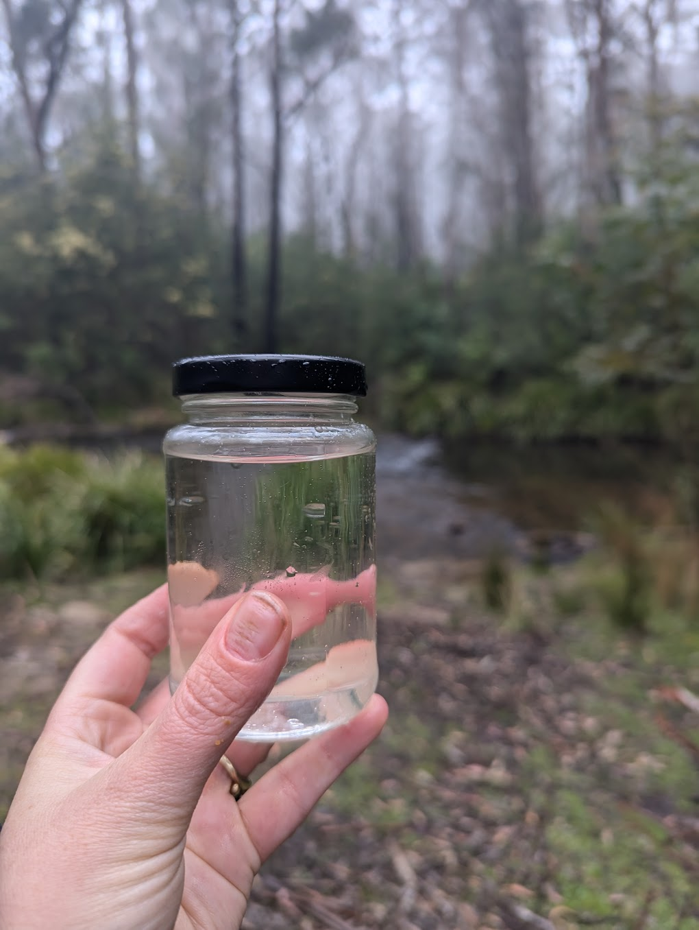 I have been harvesting water. I have been driving to fresh flowing creeks, and walking inside them for as long as I can. Scooping up little jars of water to take to the microscope.